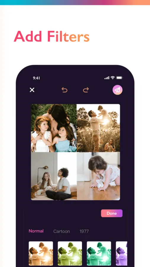 - Photo filters to choose from and apply instantly.