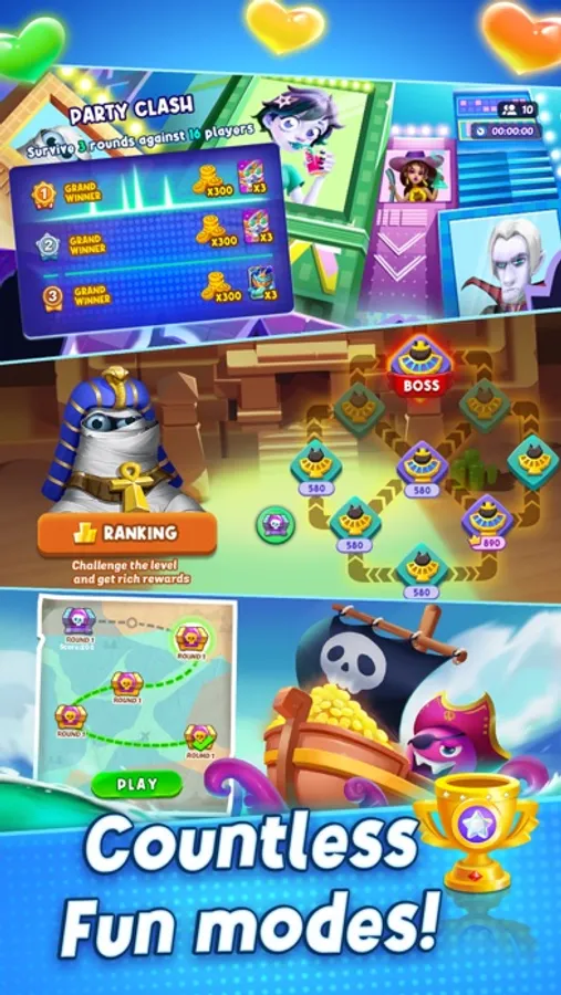 You will enjoy more fun with us than other games, such as Match Masters, The Broken Tree, Bejeweled, Cookie Run: Kingdom, Funko Pop Blitz, Mayor Match, Candy Storm, Blast Athletics, Angry Birds Journey, and many more.