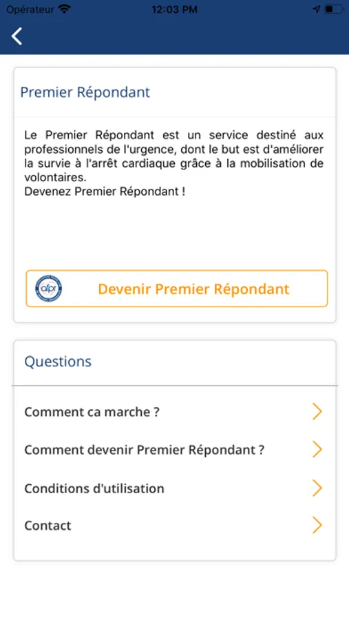 AFPR Premiers Répondants est une application d’urgence de proximité au service de la population mosellane qui met en lien les services de secours avec des secouristes professionnels et/ou bénévoles géo-localisés dans les environs d’un arrêt cardiaque : les premiers répondants