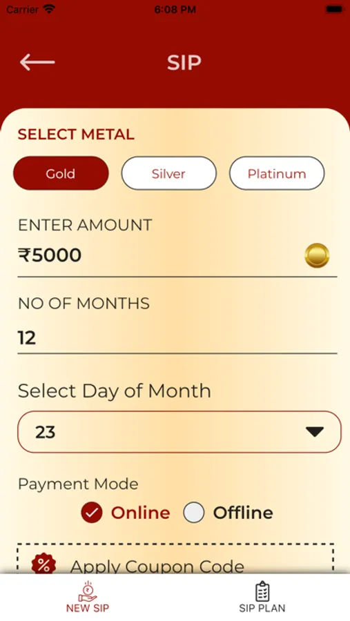 Customers can create an Monthly Saving Plan (SIP) in the App."