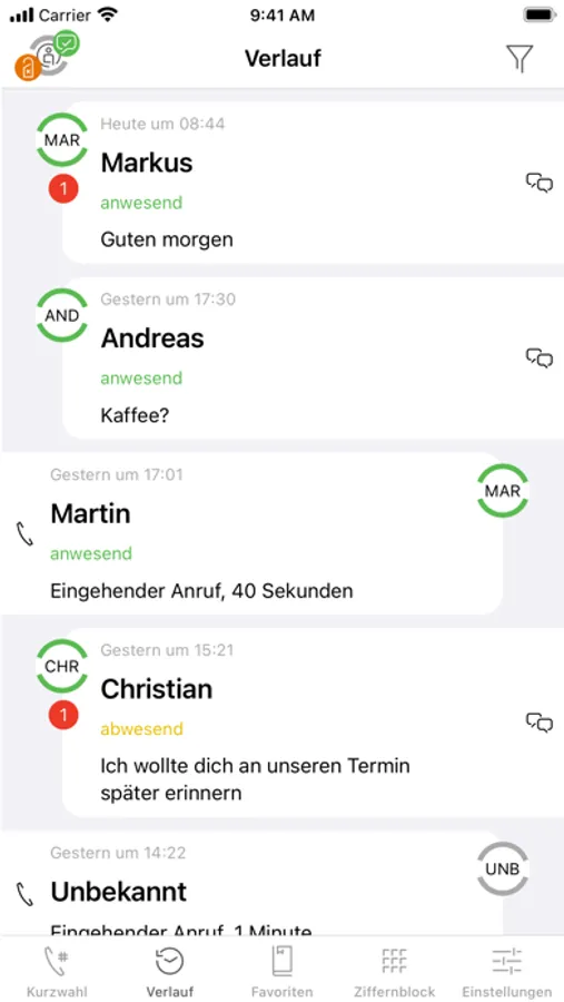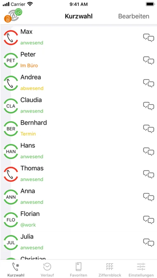 Sie können aber noch mehr! So sind die Online Status der Kollegen sichtbar, ob der er telefoniert oder erreichbar ist und auch die Umleitungen