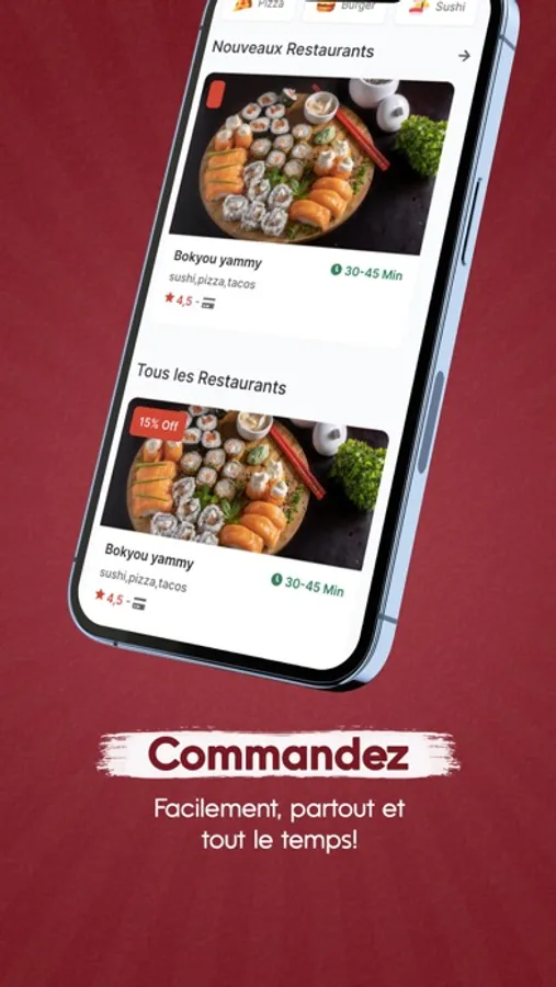 Que souhaitez-vous manger? Végétarien, burger, sushi, kebab, tacos, pizza ou encore pâtes, Notre application vous permet de commander les meilleurs repas dans tous les restos ou fast-foods de votre ville.