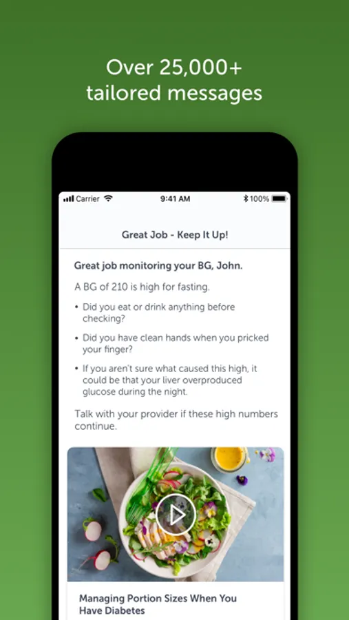• Real-time coaching as you enter blood sugar results