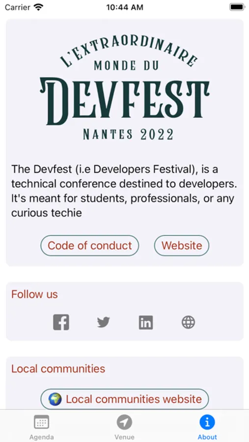 The official DevFest Nantes conference app is your co-pilot (or Passepartout) to navigate the conference. With the app, you can: