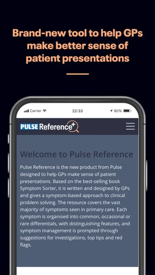 Designed by GPs to help doctors diagnose patients with a multitude of symptoms from the common to the vague and occasionally obscure. With Pulse Reference, GPs can search for symptoms, identify common, occasional and rare diagnoses, spot red flags, and identify possible investigations.