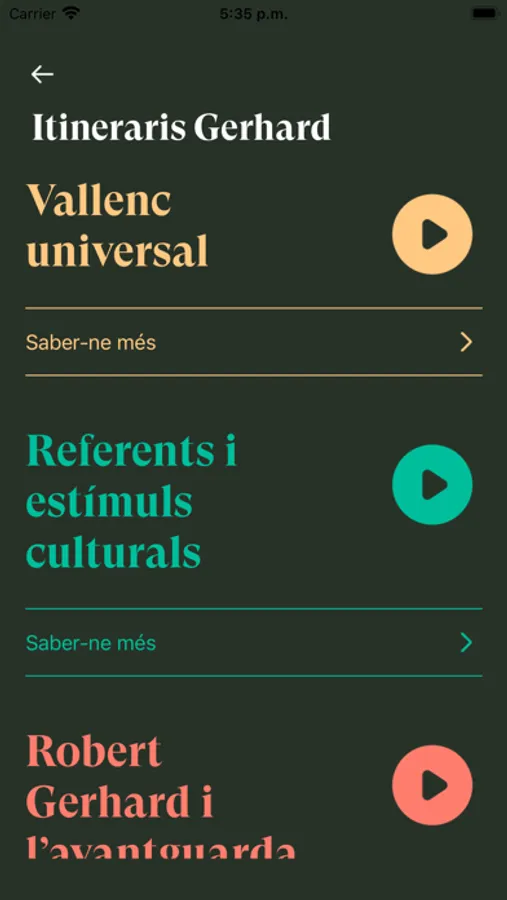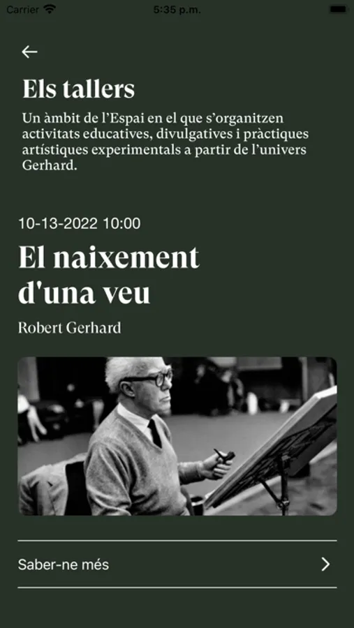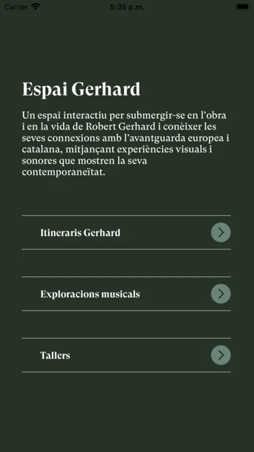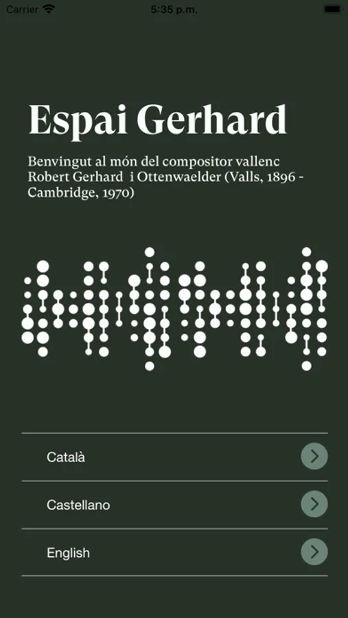 L'eina per a gaudir de manera immersiva la teva visita a l'Espai Gerhard. Vine preparat: descarrega-te-la ja i quan arribis a Valls, gaudeix sense esperes dels itineraris i de les experiències que et proposem a l'entorn d'aquest genial compositor (Robert Gerhard Ottenwaelder, Valls 1896-Cambridge 1970)