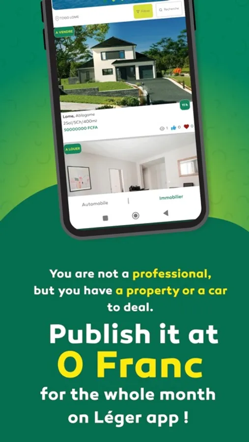 Constantly confronted with housing problems here in African cities, we had the idea of developing the Léger mobile application in order to help not only fellow citizens who encounter difficulties in their search for housing, but above all to allow them to compare the prices of properties to rent or buy in the same area without being subject to the speculations of landlords and real estate agents who, at the end of the day, don't really care about the current world economic situation. Thanks to the competition imposed on them by Léger, we hope that property prices will henceforth be reasonable for our populations throughout Africa.