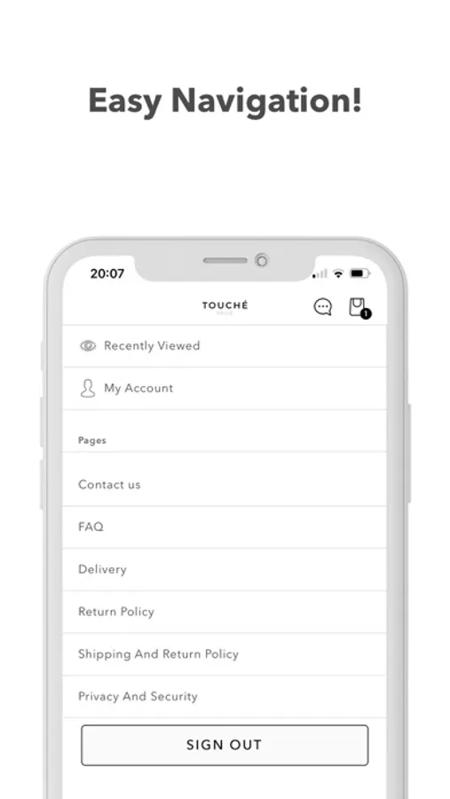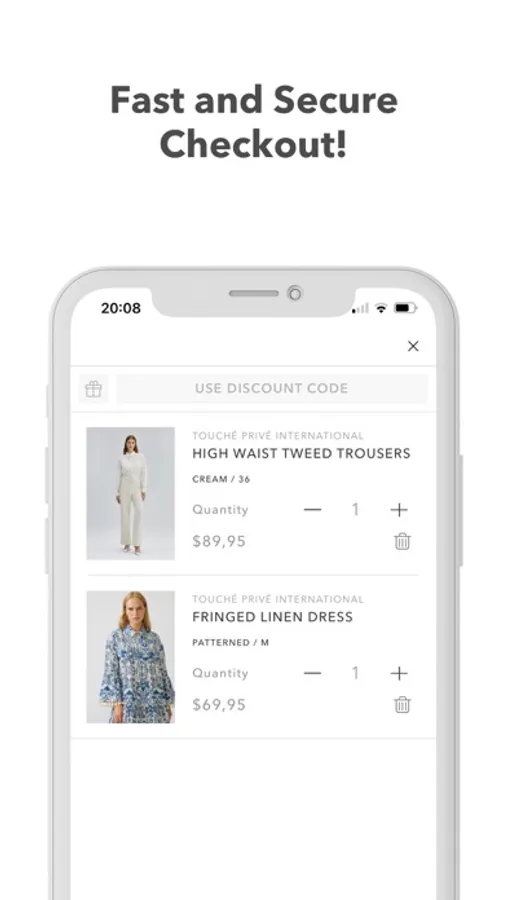 Download the Touché Privé mobile application for free to discover and order hundreds of products in many categories such as dresses, trousers, skirts, knitwear, shawls, shirts, tunic, jackets, bags, and order safely.