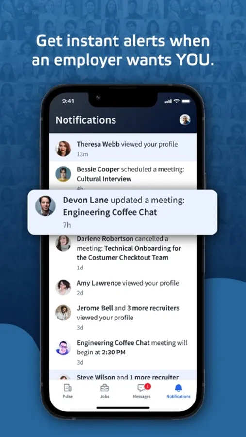 • Push notifications: Know immediately when someone views your resume, messages, or wants to connect.