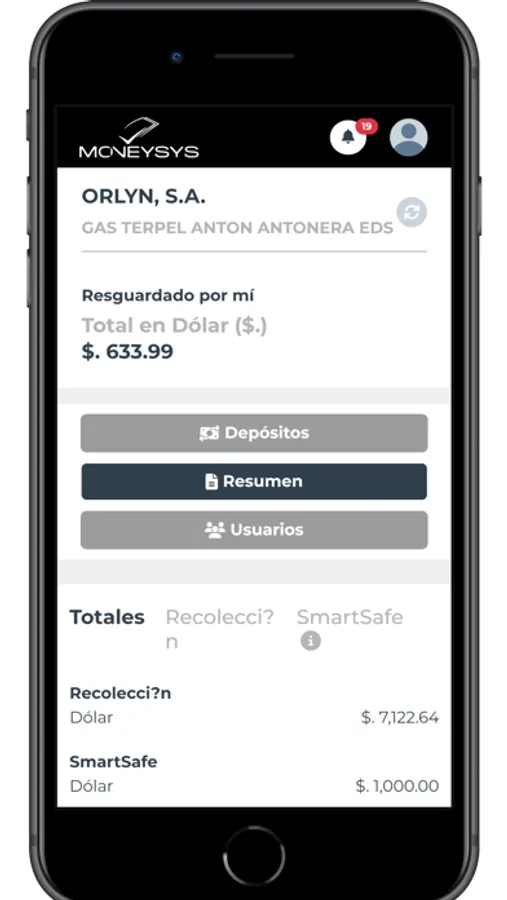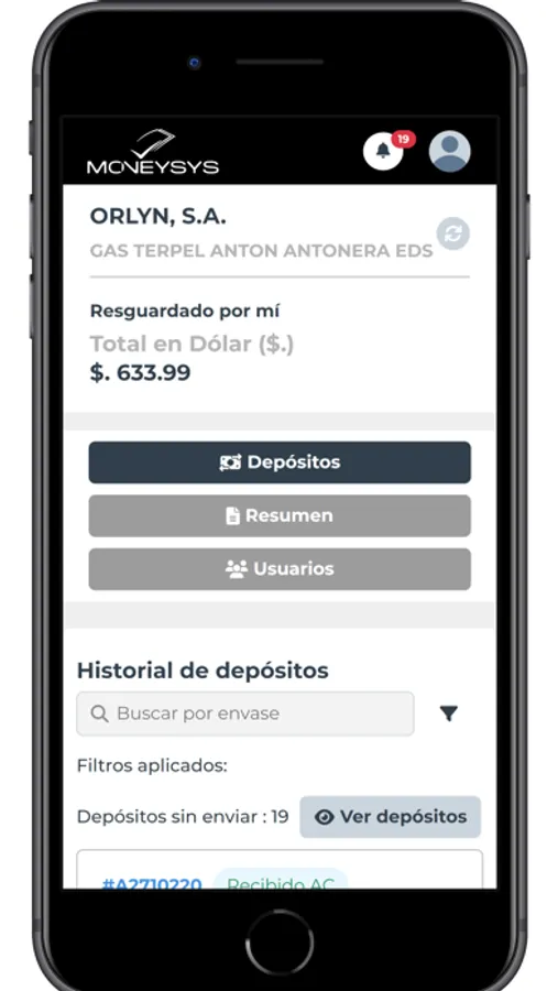 App para el registro de depósitos del sistema Denarius MoneySys, ver historial de transacciones por punto de visita.