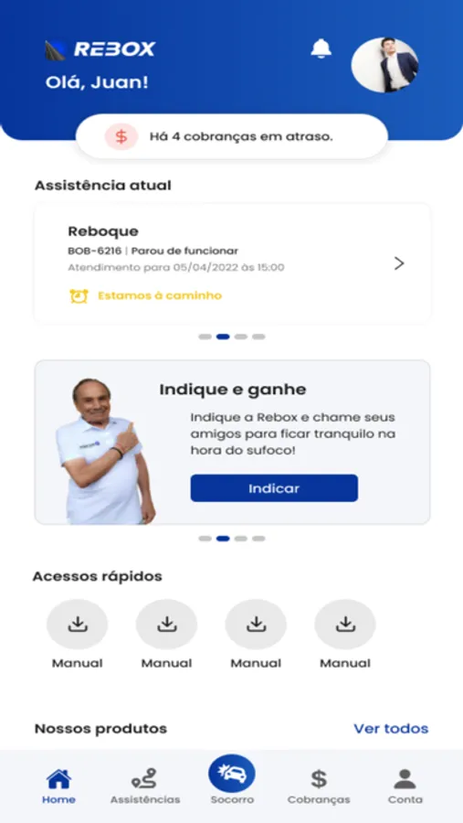 Através de nossa plataforma online, os clientes solicitam serviços de REBOQUE, PANE ELÉTRICA, SOCORRO MECÂNICO, FALTA DE COMBUSTÍVEL, CARGA NA BATERIA, TROCA DE PNEU e CHAVEIRO AUTO, proporcionando ao cliente, ECONOMIA, PRATICIDADE e QUALIDADE. Para isso, a REBOX conta com uma das maiores redes de assistência do país, treinada e habilitada para atender 24 horas por dia, 7 dias por semana, objetivando sempre superar as expectativas dos nossos clientes.