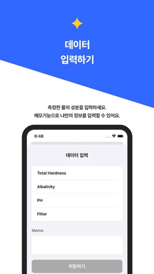 - 물의 성분 보완을 위해 사용하는 필터 정보와 추가적인 정보를 메모하여 함께 저장할 수 있도록 하였습니다.