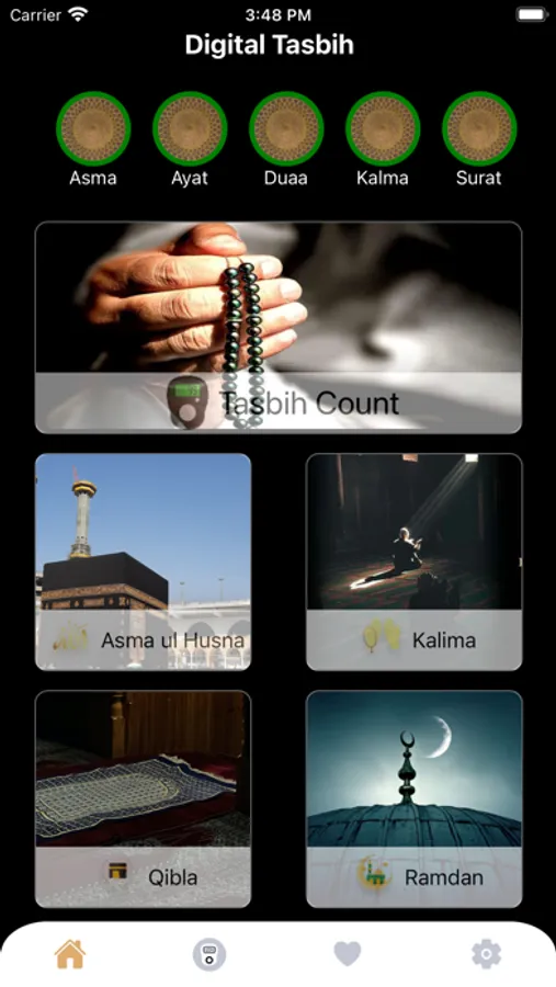 Count the Reading of Asama Ul Hassna, Kalma, and ZIkr with the beautiful animation and beautiful manner, and monitor the counting of tasbeeh every time
