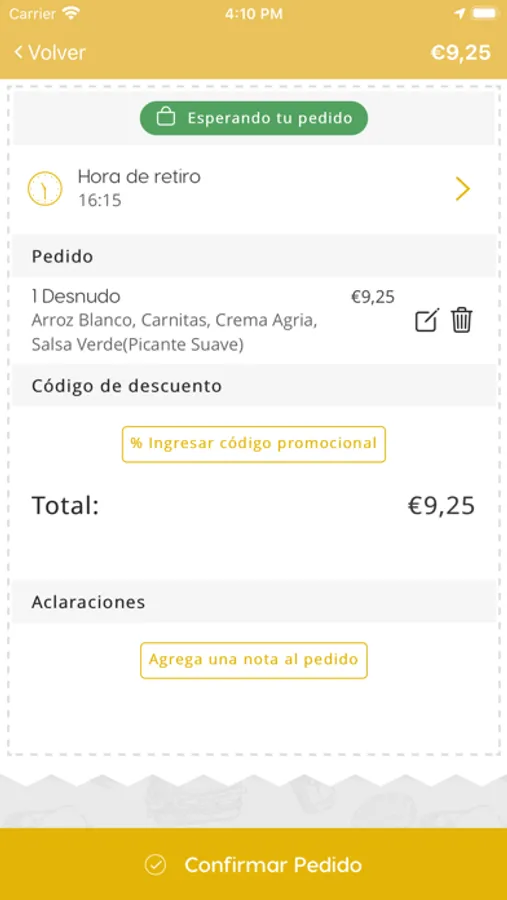 Abre el menú, navega por las distintas secciones, elige lo que quieres pedir y envía pedido. Puedes pagar desde la APP.