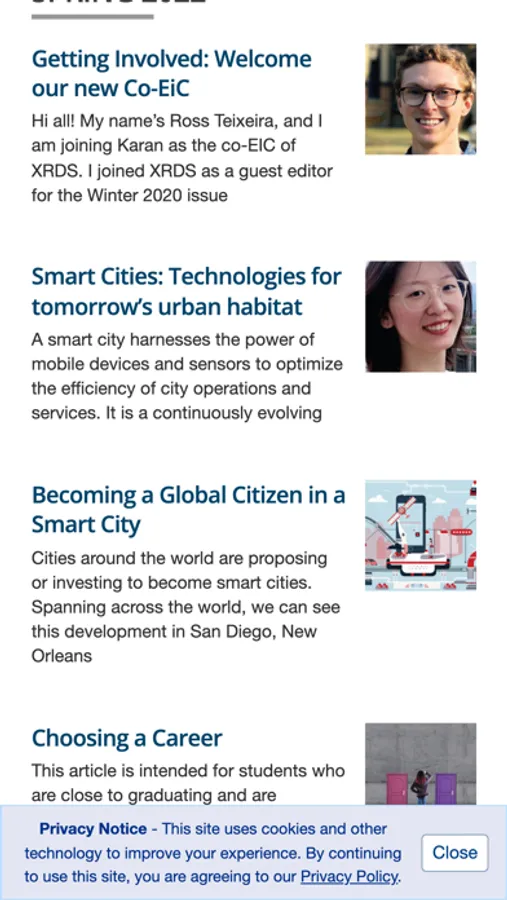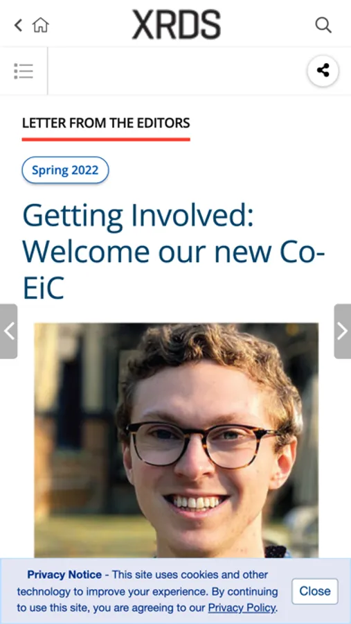 Established in 1994 and published quarterly, XRDS is the official ACM magazine for student members. Each issue features a theme, such as "CS in Service of Democracy" or "Big Data," and XRDS delivers exciting research trends, interviews, student chapter highlights, and career advice relevant to computer science students. The publication also lists major conferences, calls for papers, grants and fellowships, and other useful information to help students make the most of their educational careers.