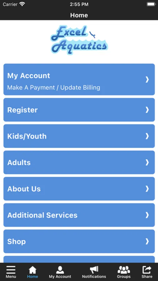 The Excel Aquatics app allows you to manage your account with ease, register for classes, schedule makeups, and more. You'll also receive important notifications about class changes, closings, registration openings, special announcements, and upcoming events.