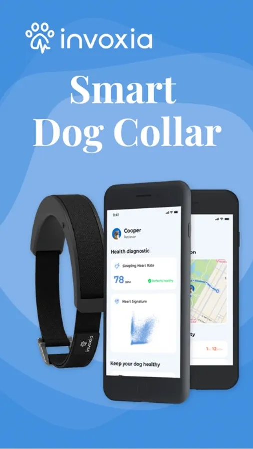 Smart Dog Collar is the 1st biometric collar for dogs with heart health monitoring and GPS tracking. Equip your dog with the collar and download the app to track all their data!