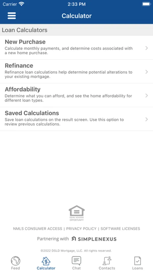The calculations provided by the DSLD Mortgage Mobile App are useful in giving you an idea of what homeownership might mean for you. However, please be sure to contact your DSLD Mortgage Loan Originator for a customized solution tailored to your specific needs, goals and life circumstances. Your Loan Originator is here to assist you with any questions you have about your loan and the loan approval process. It is our job to concentrate on the details so that you can truly enjoy the excitement that comes with purchasing a new home.