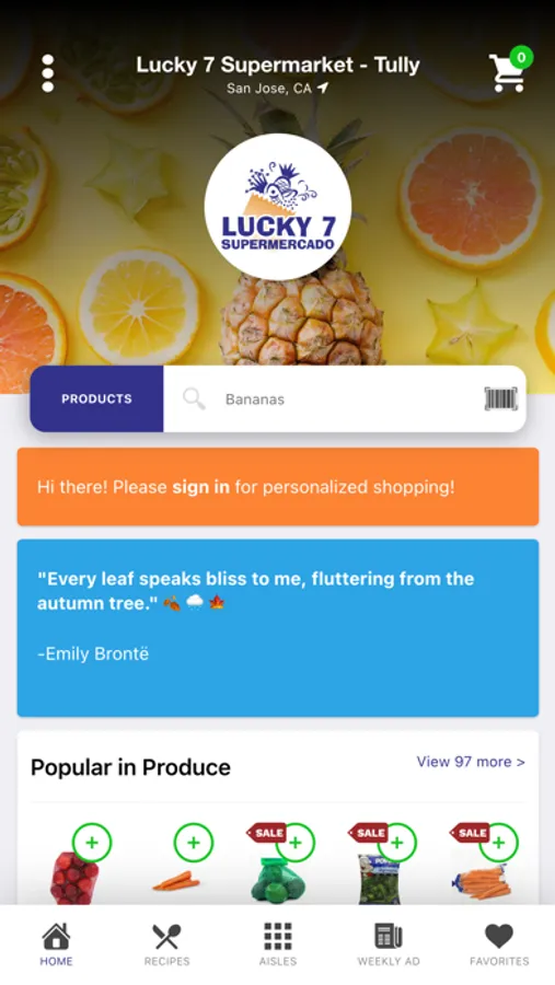 Order your groceries from Lucky 7 Supermarket on the go on your mobile device or from your iPad on your couch. Our award-winning grocery app makes grocery shopping a breeze with quick access to our weekly circular, an easy-to-use product search, detailed product details and labeling, tasty recipes, and family meal planning tools. What could be better than that?