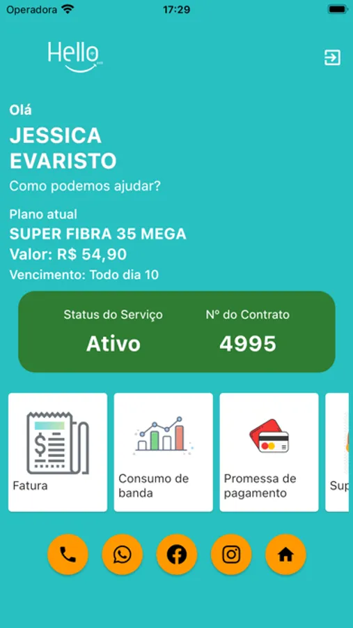 No app da Central do Assinante HELLO WEB CLIENTE você pode: