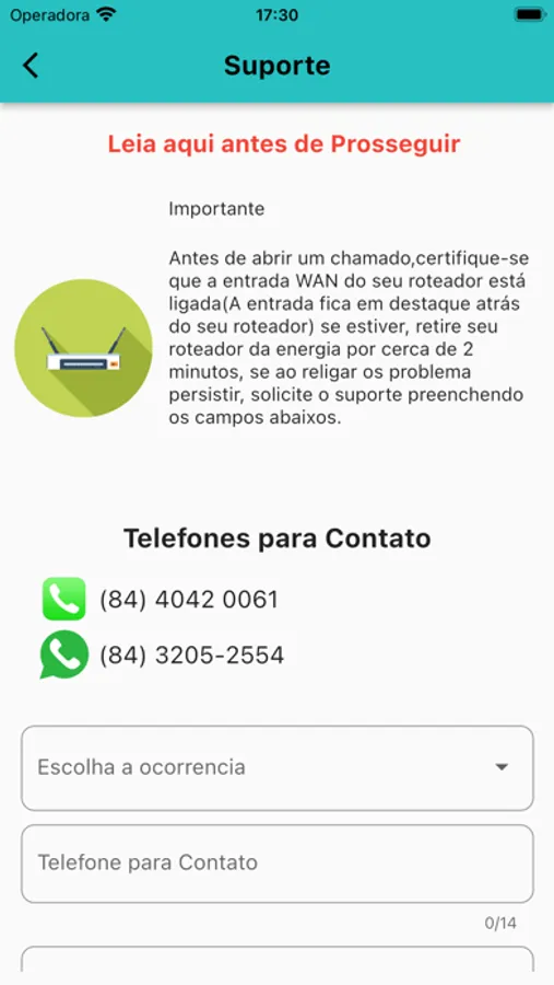 Solicitar Suporte.