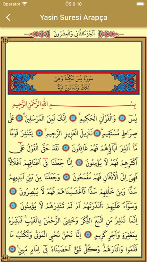 Yasin Suresi Türkçe ve Arapça okunuşunu, mealini, tefsirini, faziletini, internet olmadan okuyabilirsiniz. Ayrıca Diğer tüm Kuranı Kerim surelerini Türkçe ve Arapça olarak okuyabilirsiniz. Ve tüm Kuranı Kerim surelerinin mealini, tefsirini, faziletini ve konusunu okuyabilirsiniz.