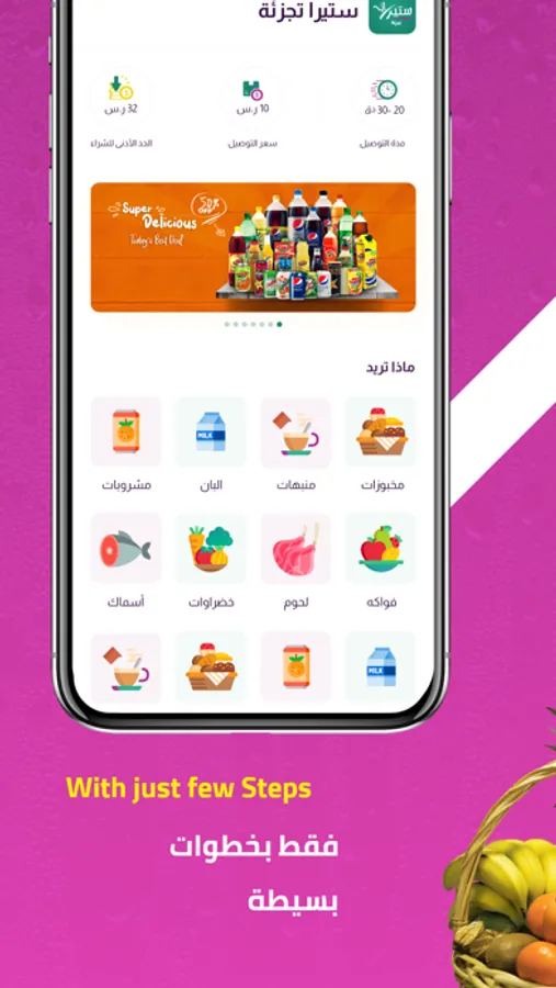 شراء المقاضي اليومية من متجر ستيرا بسهوله الاستخدام وباوقات مجدولة تناسب عملائنا وبافضل الاسعار على الاطلاق, يقوم فريق ستيرا على تامين مشتريات العملاء بعد تاكيد الطلب وتجهيزها بجوده عاليه
