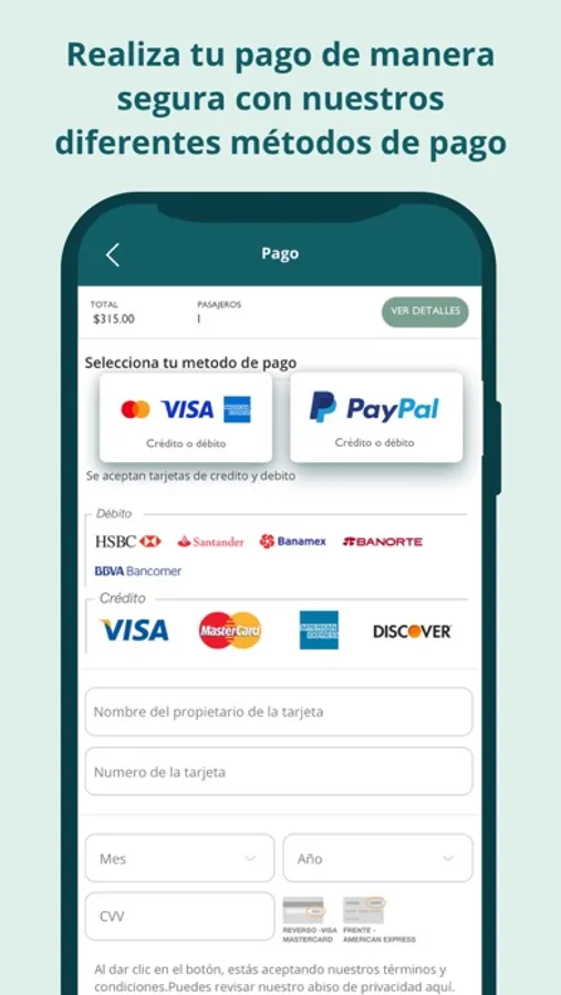 Garantizamos la compra segura de boletos de autobús, además contamos con diferentes métodos de pago, para que puedas comprar tu boleto a través de tu método favorito de pago.