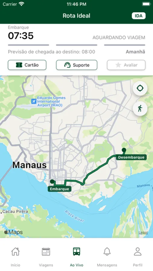 Consulte no mapa a localização do veículo ao vivo e o tempo estimado de chegada no seu ponto.