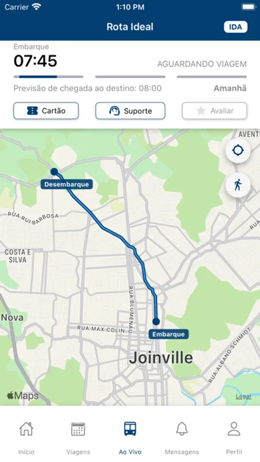 Consulte no mapa a localização do veículo ao vivo e o tempo estimado de chegada no seu ponto.