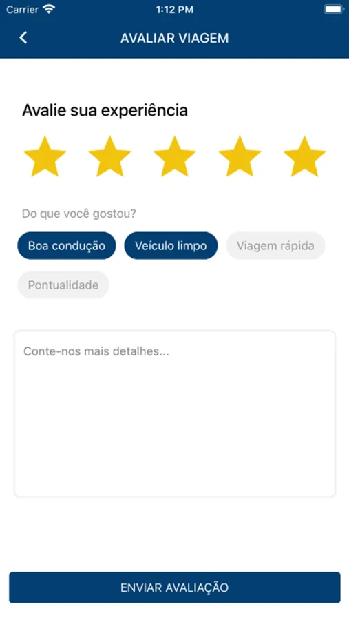 Avalie como foi sua viagem e envie sugestões diretamente pelo app.