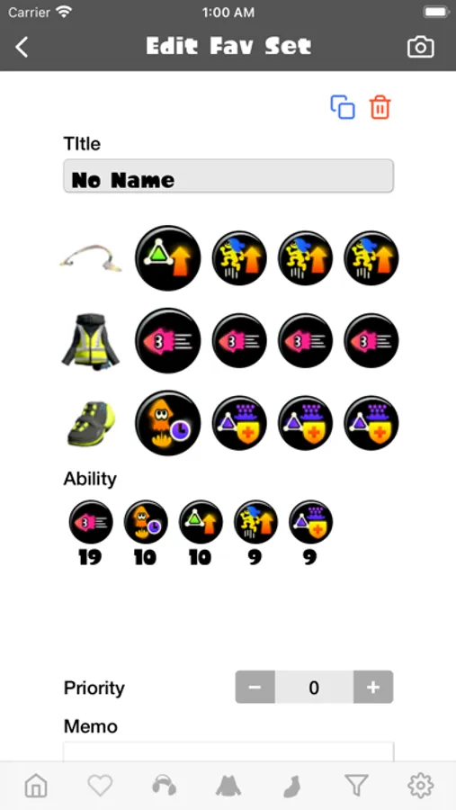 You can register gear combinations as favorites. Since you can search from the list of favorites by title and memo at the time of registration, let's make your own database such as what kind of weapon and stage fit it.