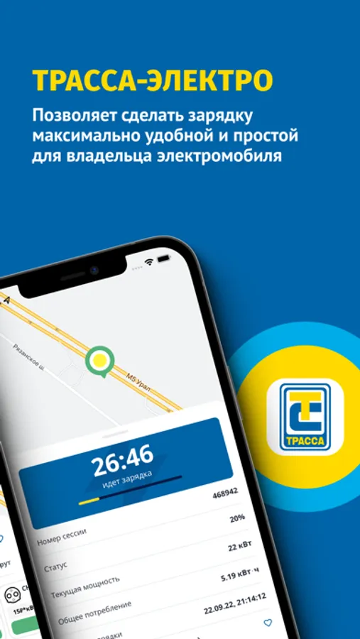 ТРАССА-ЭЛЕКТРО позволяет управлять зарядкой электромобиля на зарядных станциях ГК ТРАССА, расположенных около оборудованных всей необходимой инфраструктурой заправочных комплексах и ресторанах сети ТРАССА