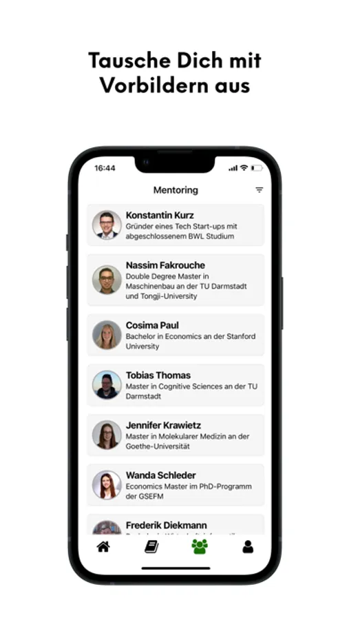 Mentoring: Vernetze Dich mit Young Professionals diverser Hintergründe, um Tipps für die eigene Entwicklung und Karriere zu erhalten. Welche Ausbildung, welches Studium, welcher Beruf? Wie lerne ich eine Sprache oder erhalte ein Stipendium? Die Legmon Community hilft sich gegenseitig.