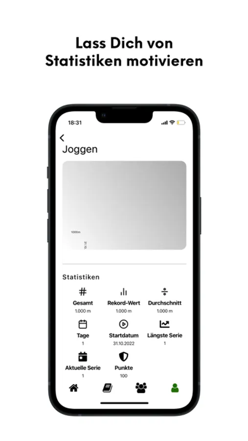 Statistiken: Beobachte Deinen Fortschritt in unserem Statistik-Menü und halte so fest, was Du erreicht hast. Streaks, Rekorde, Durchschnittswerte - Mit dem Tracking-Tool hast Du den gesamten Überblick und nutzt mit dem Gamification-Ansatz Deine eigene Psychologie zum Vorteil.