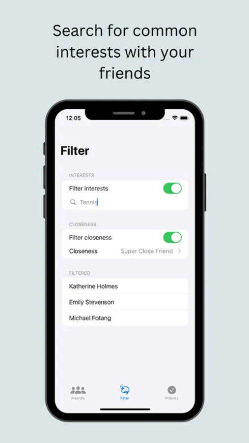 3. You can find friends to pursue a shared interest with by filtering your friends based on interests and closeness.