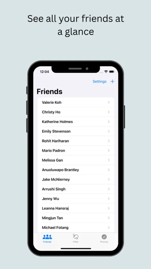2. You can filter your list of friends by name, add new friends and view details about each friend.
