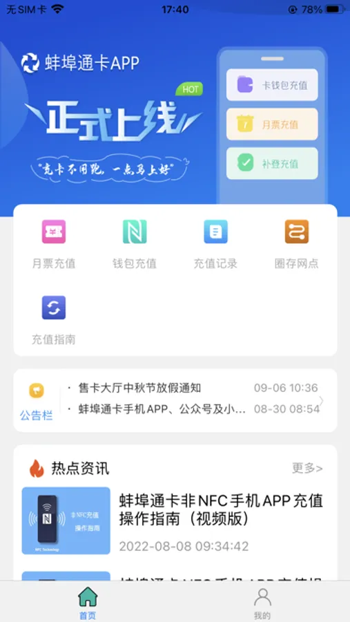 蚌埠通卡是蚌埠城市通卡有限责任公司提供的通过手机端支持IC卡钱包充值、月票充值、乘车码、公交资讯等业务的综合应用,我们致力于让IC卡充值更加便捷化、出行更加智能化,为用户提供安全快捷的城市一卡通便民服务。