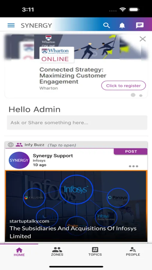 Synergy as the name suggests is a collaboration platform powered by Infosys for the HR community, specifically