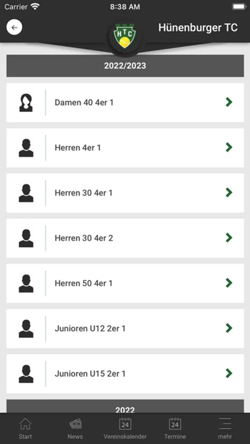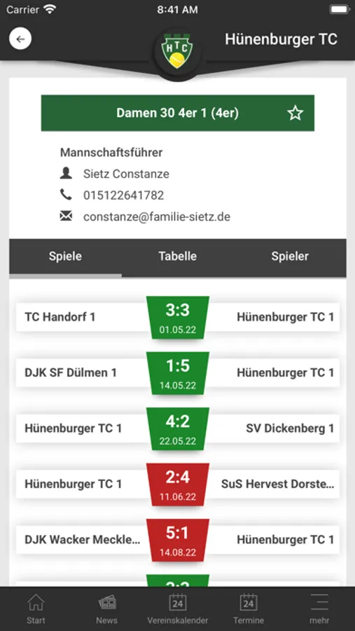 - Alle Mannschaften inkl. der Spieler und den Ergebnissen der Meisterschaftsspiele