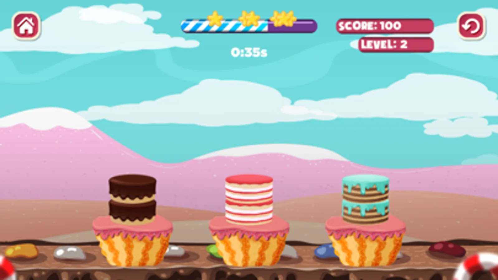 Each level will have a period of time for you to remember the position of the cakes. When starting, arrange them in their correct place. Through each level the number of cakes to arrange will increase.