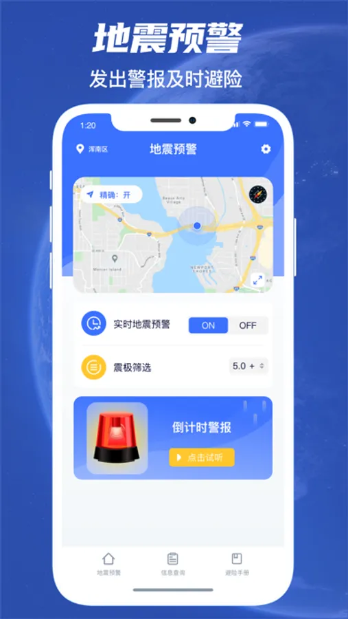 支持根据预警信息进行倒计时、发出声音或震动警报,及时采取地震避险措施