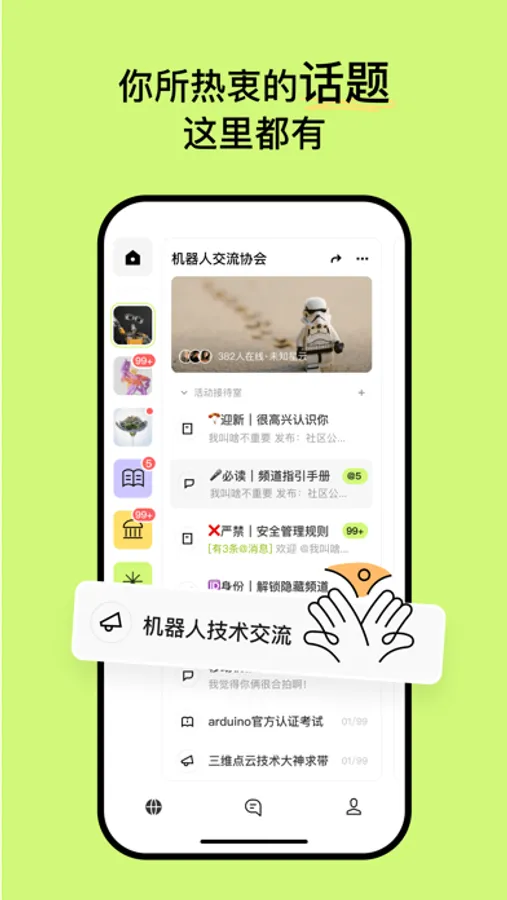 在AGI频道内获取最新资讯分享,实时掌握行业最新风向,结识AGI行业大佬。还能自主创建频道集合同好共创自由社区!