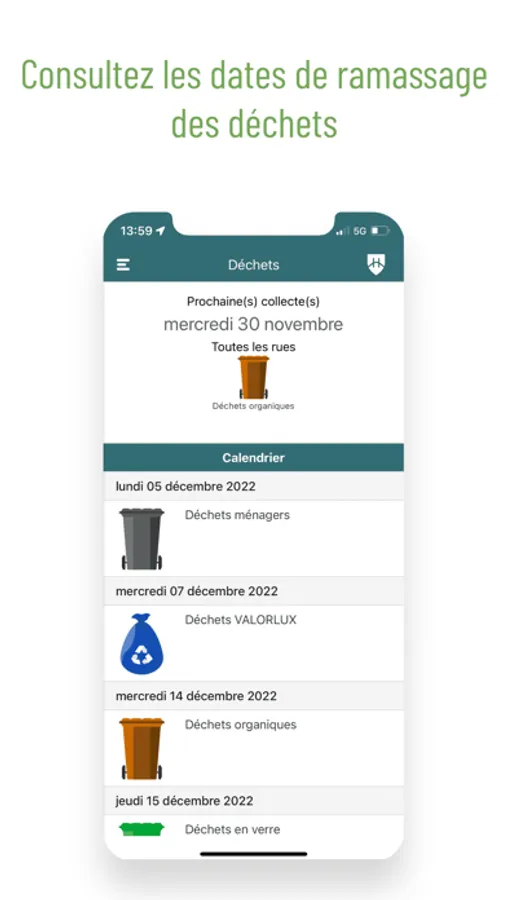 DECHETS: contient le calendrier des collectes des déchets, en plus vous pouvez choisir d’être