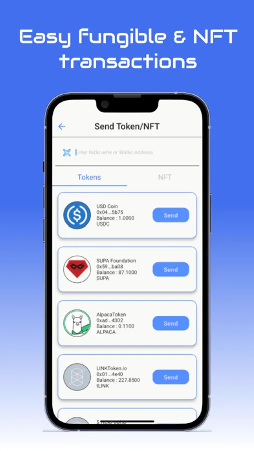 Easy fungible and NFT transactions: Manage all your fungible and NFTs in one app!