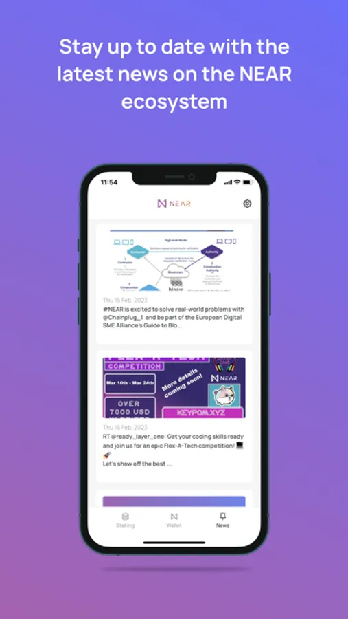 NEAR Mobile is the ultimate non-custodial mobile NEAR Wallet for securely storing, managing, and transferring your NEAR tokens and other cryptocurrencies on the NEAR blockchain. With NEAR Mobile, you can easily create accounts, reserve NEAR IDs, view your tokens and NFTs inside the app, stay up to date with the latest news, stake your NEAR and earn rewards, and interact with other dapps on the ecosystem - all in one user-friendly platform.
