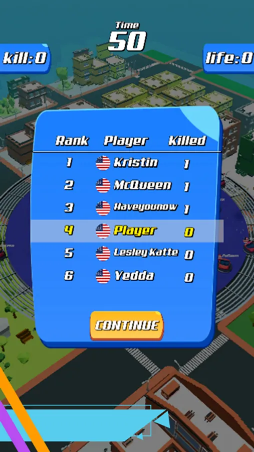 In team death mode of bumper.io you need to survive and save yourself from different players and save your life. We have added a rewarded video so if you want to survive you can watch view and your player life will be double. In this multiplayer survival car bumper mode you can knock other players from the playing area and win exciting skins and rewards and at the end of the match the score of the death match will be showing on the board.