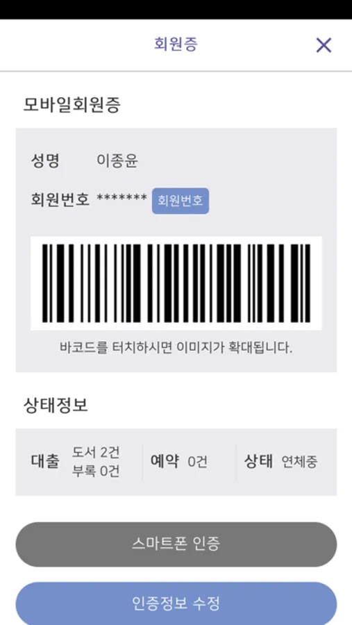 3. 모바일 회원증으로 편리하게 대출/반납 하세요