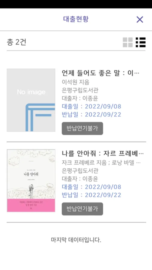 - 나의 도서관 대출현황을 조회하고, 다 읽지 못한