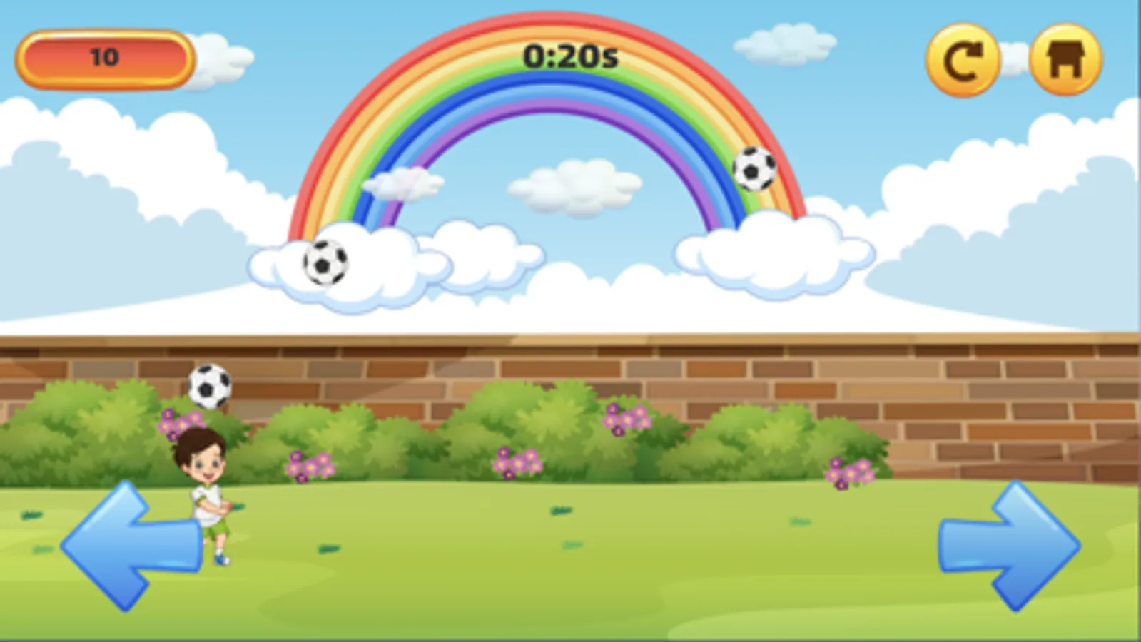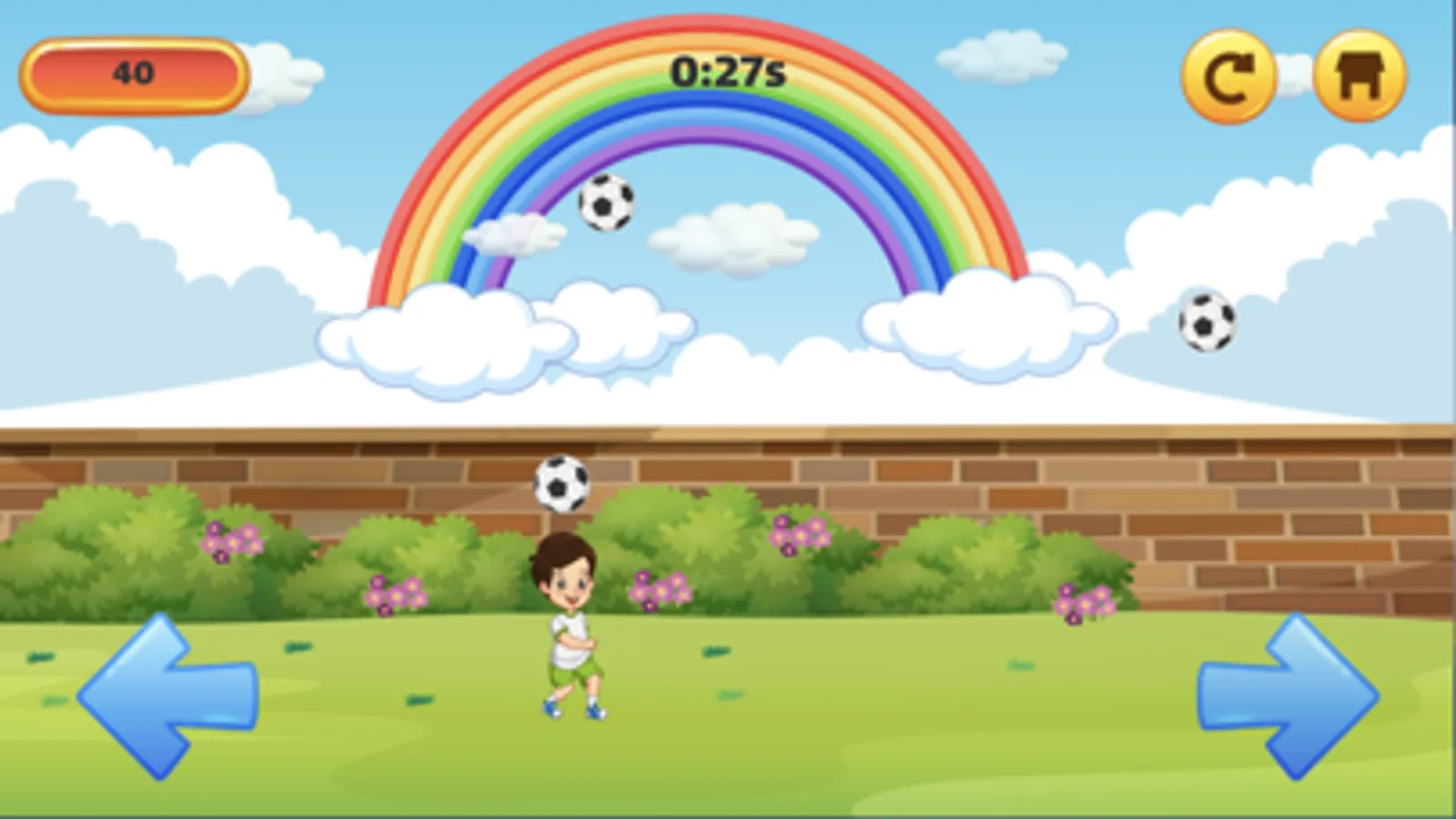 The ball will randomly fall from the sky, you use the left and right move buttons to catch the ball and head the ball up so that no ball touches the ground for a certain amount of time.